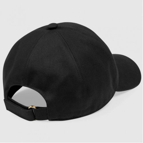 An essential Gucci accessory, the baseball hat is introduced for the Pre-Fall 2020 collectsion in cotton drill with a maxi embroidered label. A recurring seasonal motif the French motto “Gucci quelle qu’en soit la saison" translates literally to “Gucci whatever the season," a play on the concept that Gucci can be worn at any time.