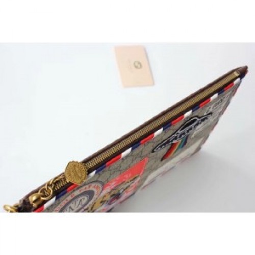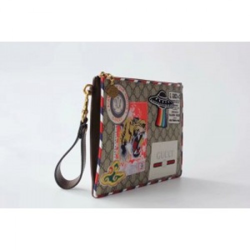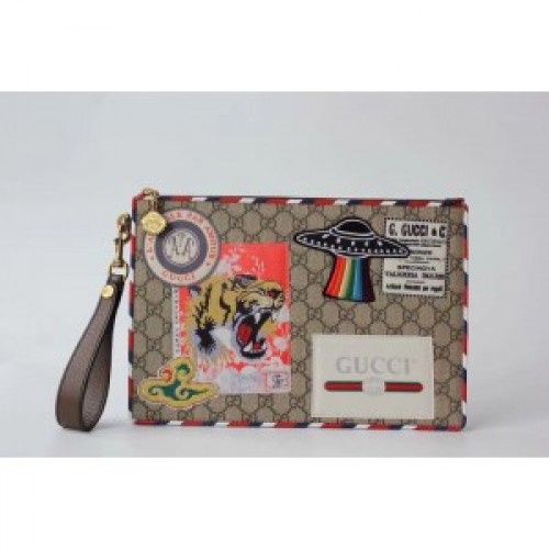 Travel continues to be a source of inspiration for Alessandro Michele. A collectsion of accessories in the GG motif is enriched with a blend of contemporary embroideries-like the UFO-and vintage inspired details, including airmail trims and vintage Gucci vintage logo from the archives. The appliqués are individually embroidered and then skillfully hand-applied to each piece by specialized artisans. This process ensures that no two items will be alike, giving each a one-of-a-kind appearance.