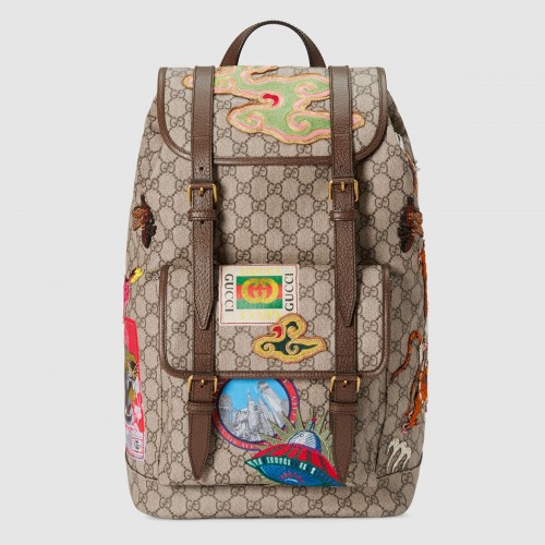 - Beige/ebony soft GG Supreme, crafted from a coated microfiber fabric, with brown leather trim