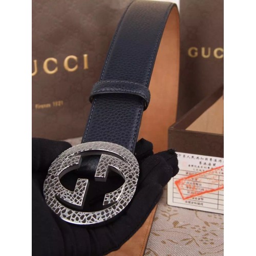 GUCCI COWHIDE BELT 07 2015SKU:he2868-107Size: width: 3.8 CM / length: 95-125 CM (Length can be increased or decreased)Materials: CowhideMain Colour: dark blueHardware: silver double GThis 7Star Gucci belt comes with: Serial and model numbers,GUCCI Gift Box, GUCCI care booklet, GUCCI cards and Tags.