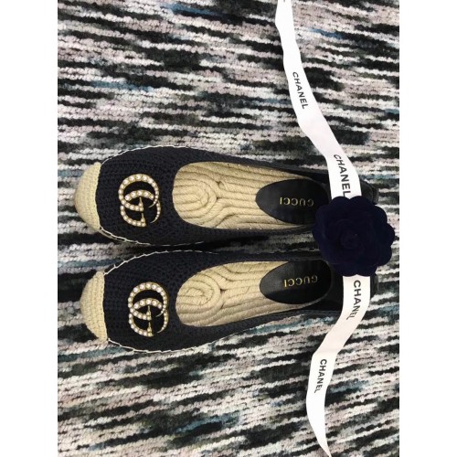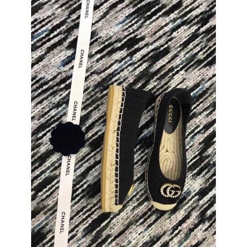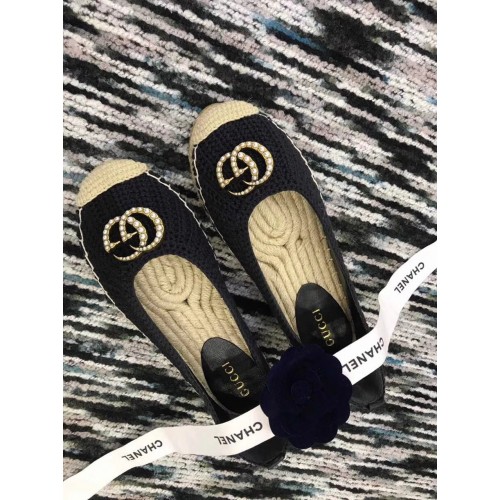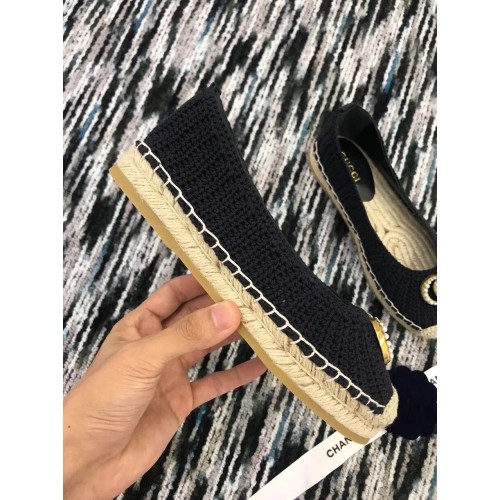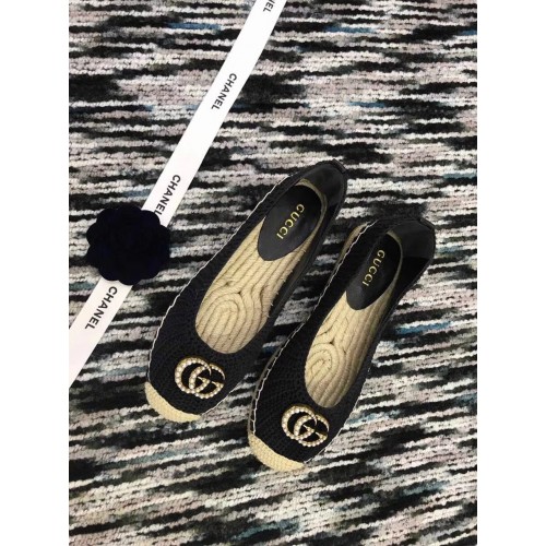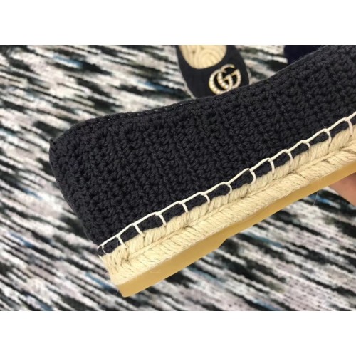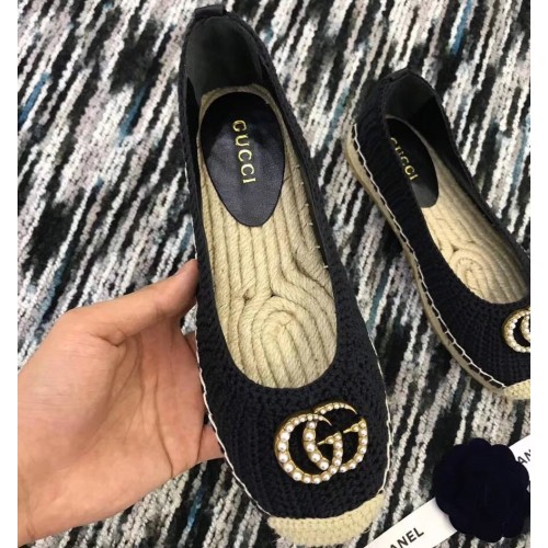 Gucci Crochet Espadrille 524974 with Pearls Double G Black