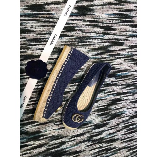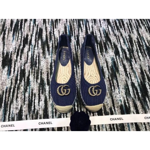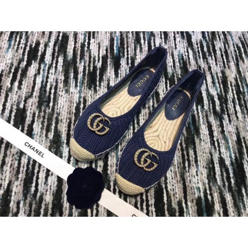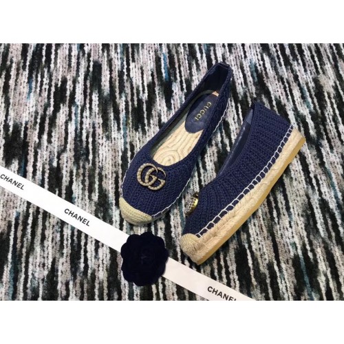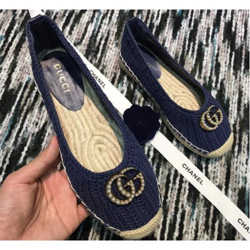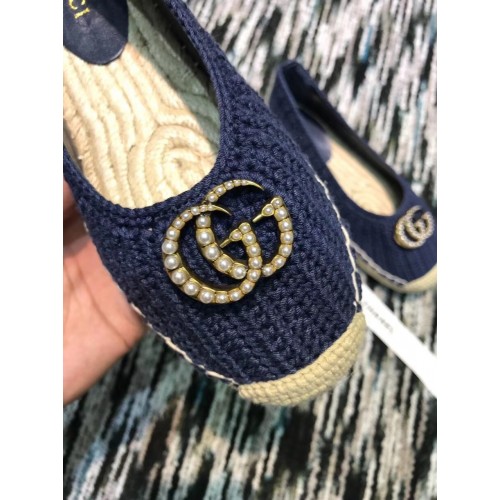 Gucci Crochet Espadrille 524974 with Pearls Double G Blue
