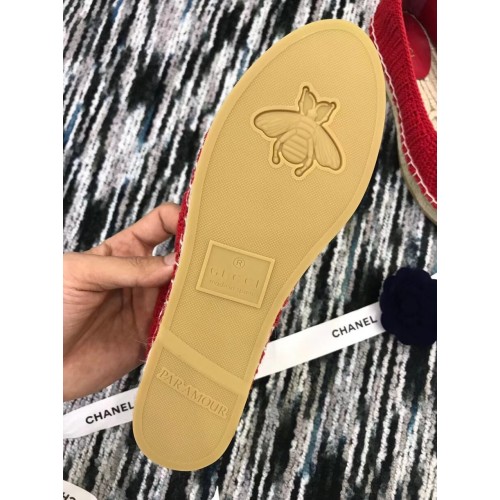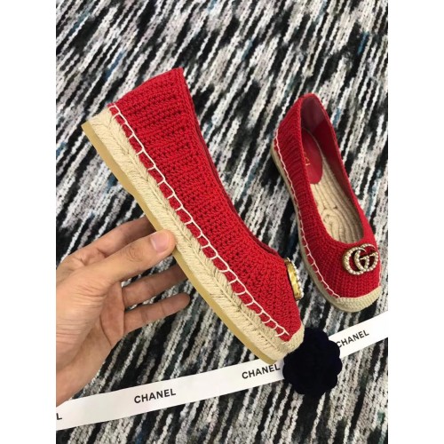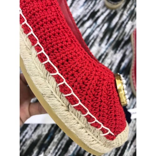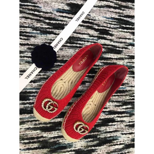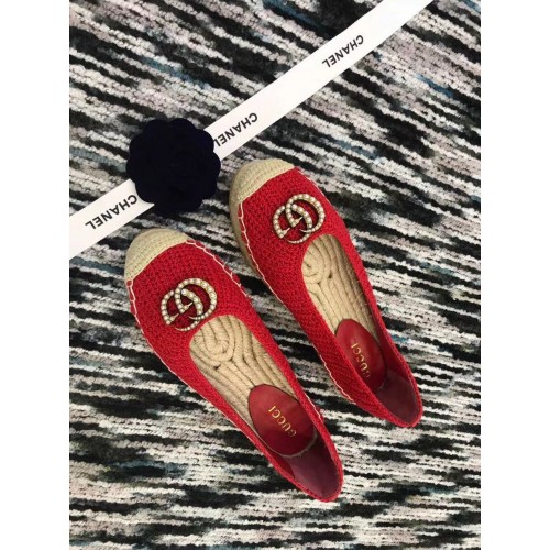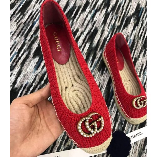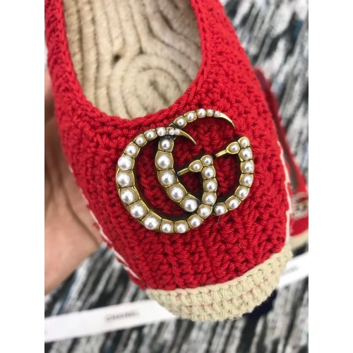 Gucci Crochet Espadrille 524974 with Pearls Double G Red