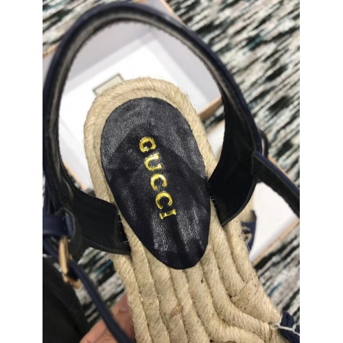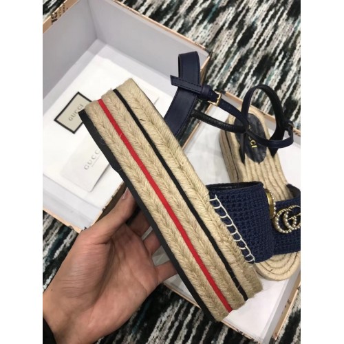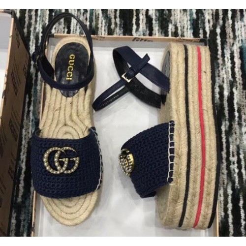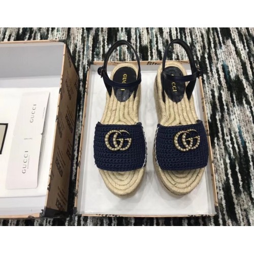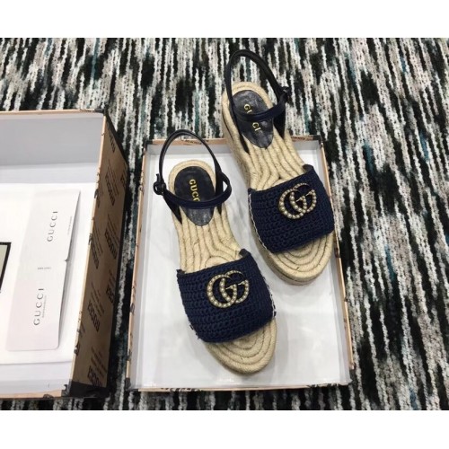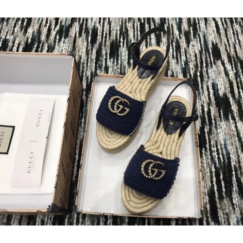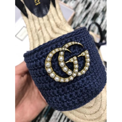 Gucci Crochet Espadrilles Sandals Navy Blue With Pearls Double G 2019