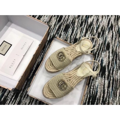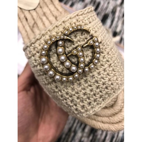Gucci Crochet Espadrilles Sandals Nude With Pearls Double G 2019