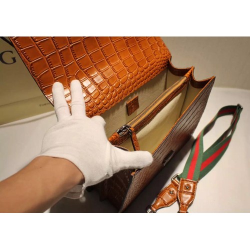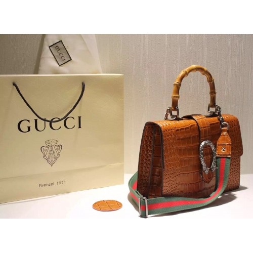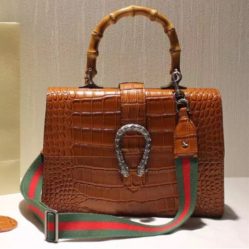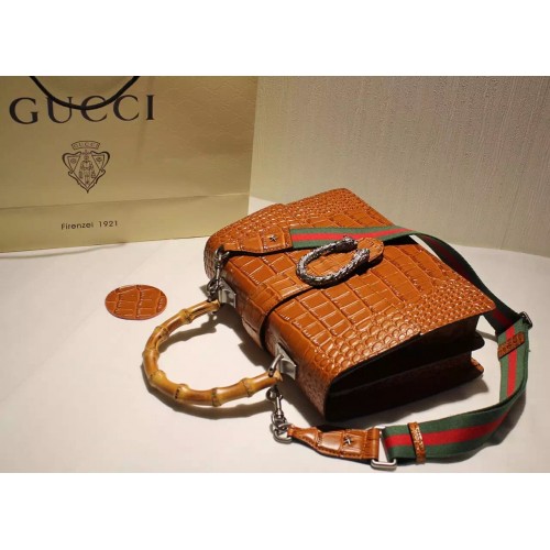 Gucci Croco Pattern Dionysus Leather Top Handle Bag 401818 Brown 2015/2016