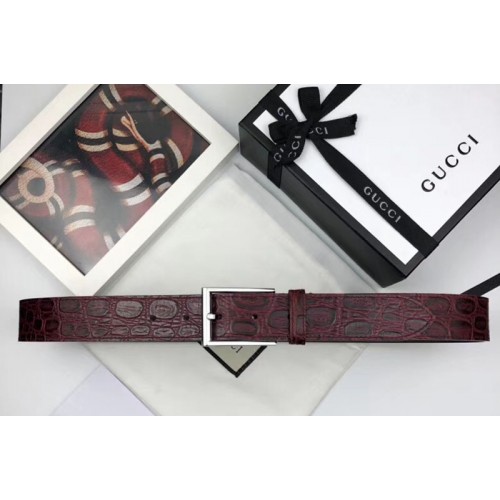 Gucci Crocodile 35mm belt with Rectangular buckle Brown