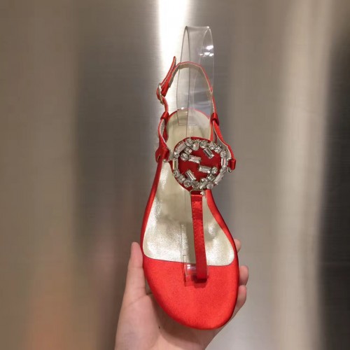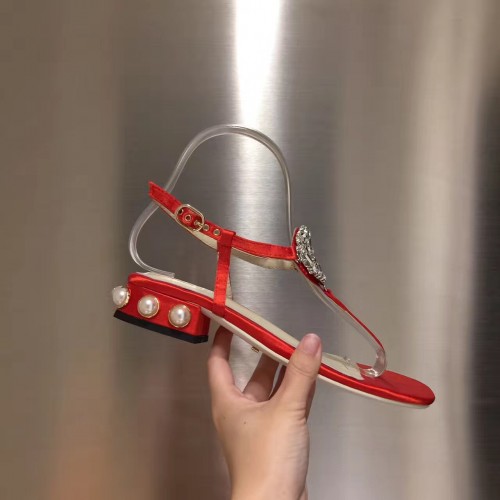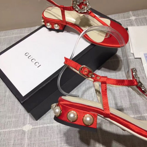Gucci Crystal GG Glass Pearl On Heel Thong Sandals Red 2017
