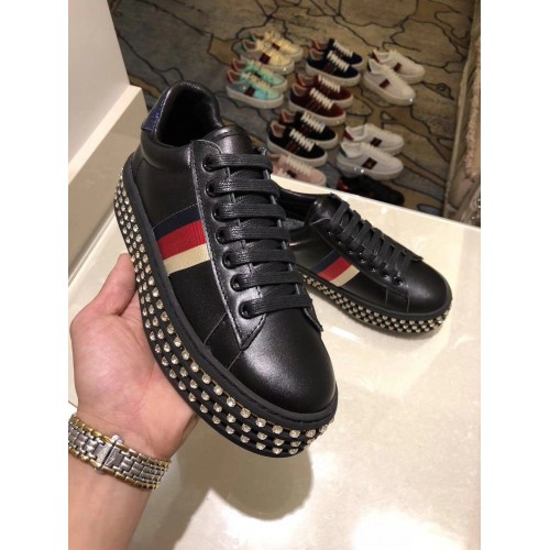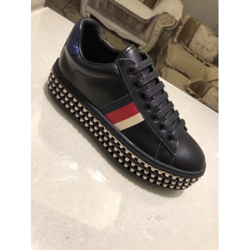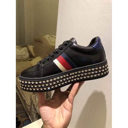 Gucci Crystals Platform Web Ace Sneakers 505995 Black 2017
