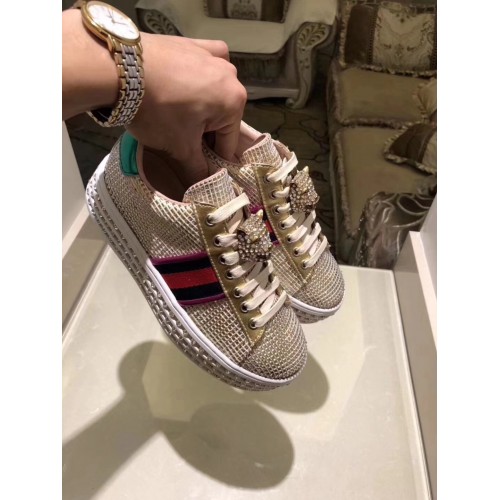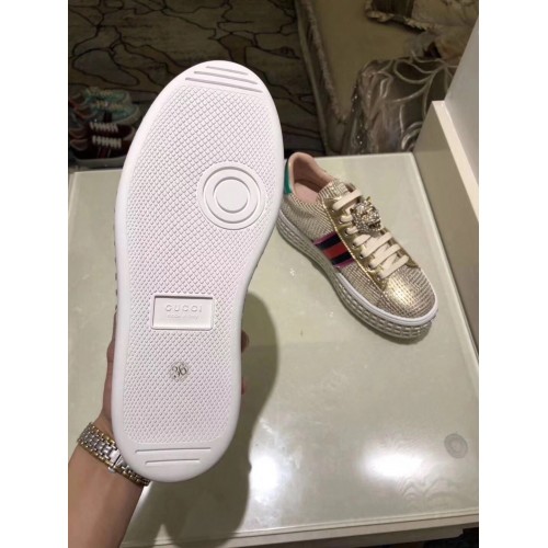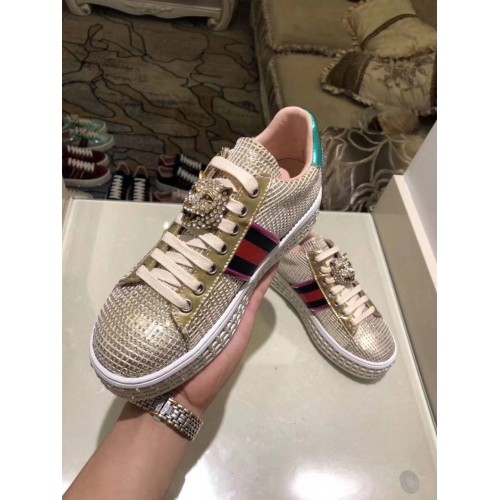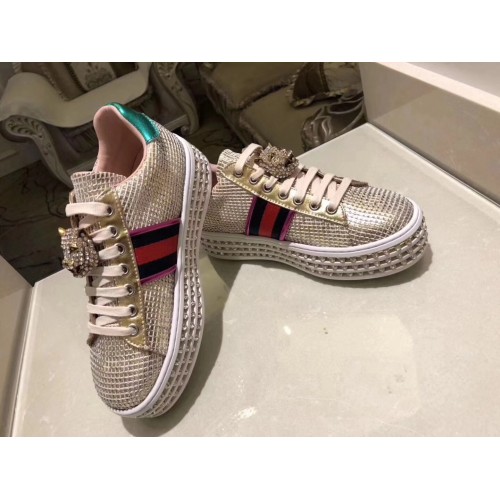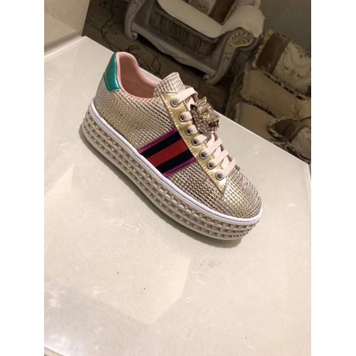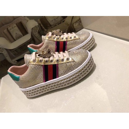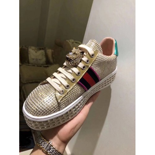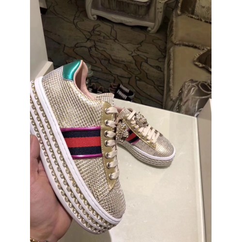 Gucci Crystals Platform Web Ace Sneakers 505995 Grid Gold 2017