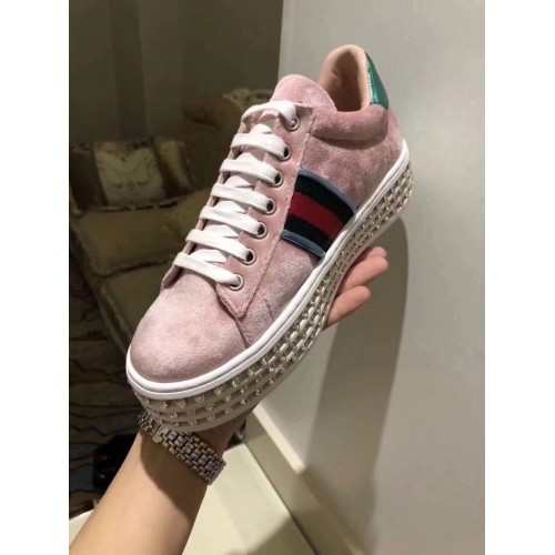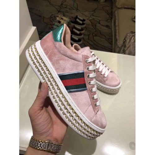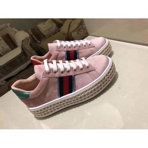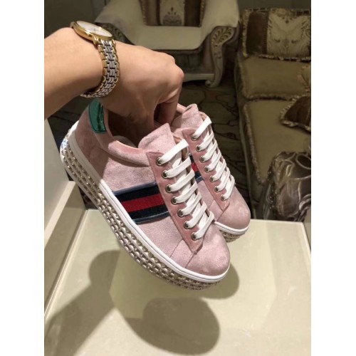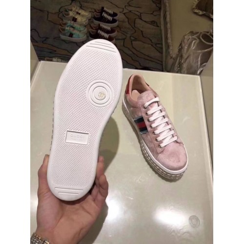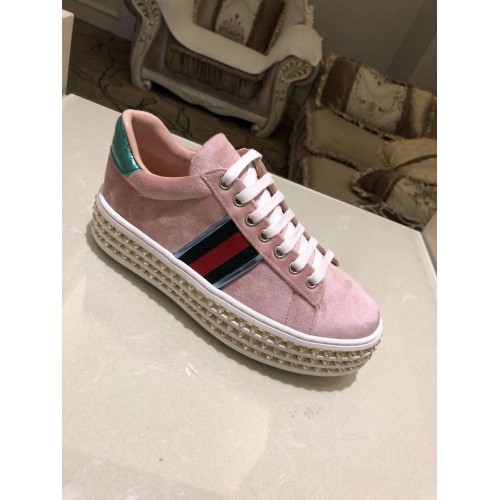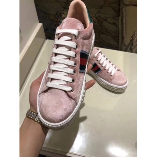 Gucci Crystals Platform Web Ace Sneakers 505995 Velvet Pink 2017