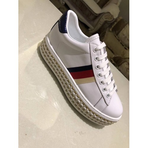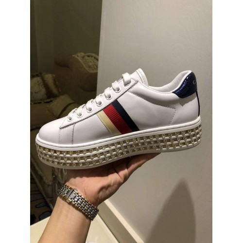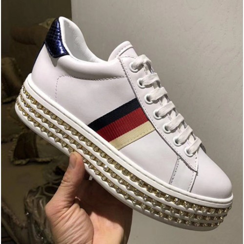 Gucci Crystals Platform Web Ace Sneakers 505995 White 2017