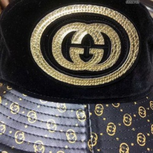 - Metallic gold Ayers Interlocking G appliqués on the sides