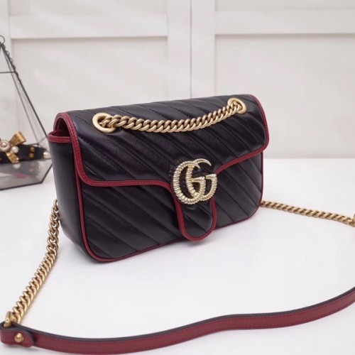 Gucci Diagonal GG Marmont Small Shoulder Bag 443497 Black 2019
