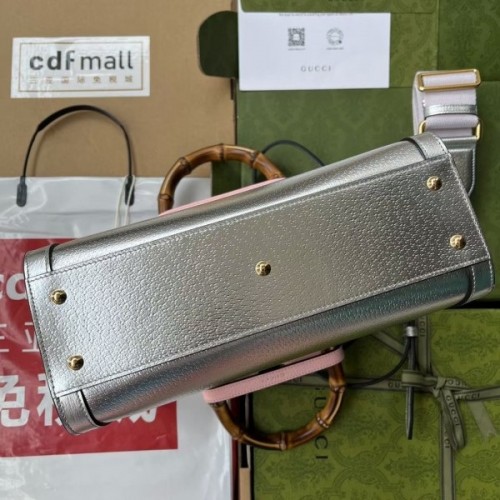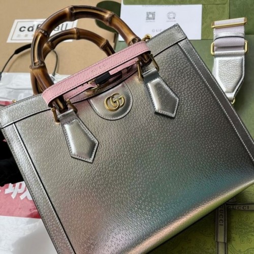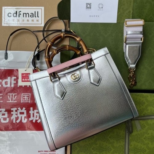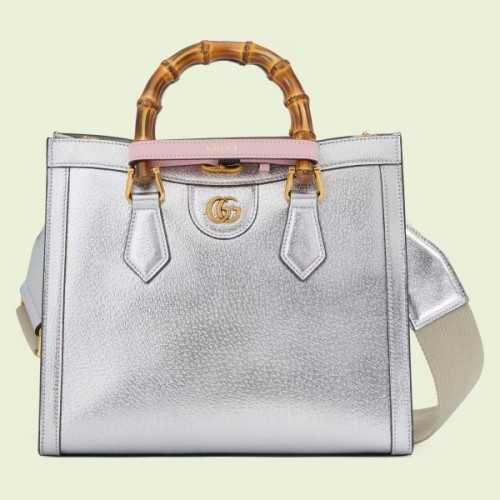 Tags: Gucci Diana Small Tote Bag In Silver Metallic Leather, ,