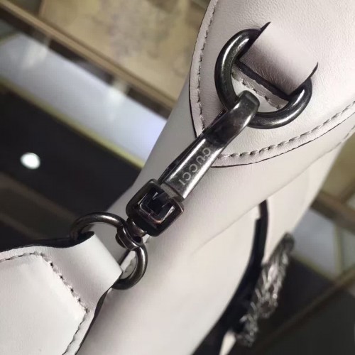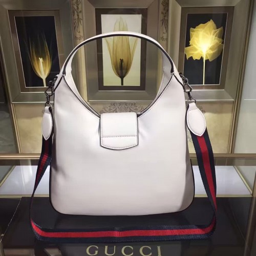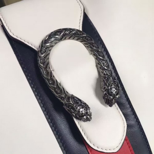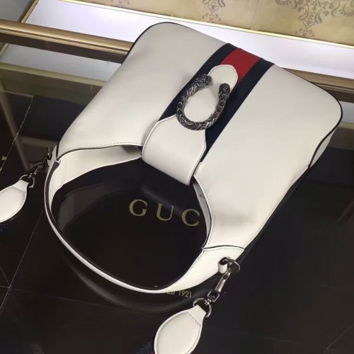 The Dionysus hobo is a new shape this season complete with the tiger heard closure-a unique detail referencing the Greek god Dionysus, who in myth is said to have crossed the river Tigris on a tiger sent to him by Zeus. Made in smooth, soft leather with a natural shine and supple appearance.32*25*5 cmWhite leather with blue/red/blue leather WebBlue/red/blue nylon Web shoulder strapOne interior zip and two smartphone pocketsTop handle Detachable shoulder strap Tiger head closureMicrofiber lining with a suede-like finishMade in Italy