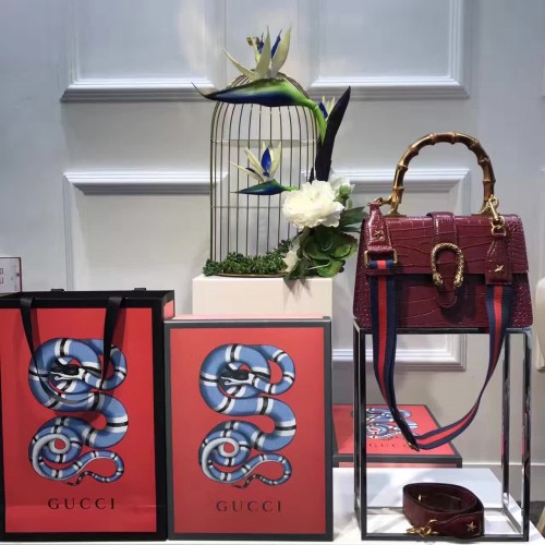 Gucci Dionysus leather top handle bag 448075 Burgundy (SuperM-71909)
