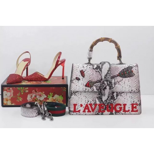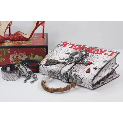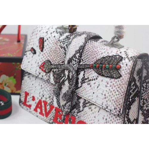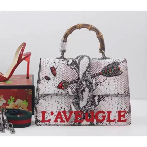 A structured contrast Dionysus bag in python with the textured tiger head spur closure-a unique detail referencing the Greek god Dionysus, who in myth is said to have crossed the river Tigris on a tiger sent to him by Zeus. Includes two interchangeable straps, a python strap and a signature nylon Web strap.Natural pythonTiger head closureHand-painted edgesHand-stitched detailsInterior open pocketInterior smartphone pocketsInterior center zip compartmentBamboo handle Includes two shoulder straps: detachable and adjustable nylon shoulder strap , detachable and adjustable leather shoulder strap Pin closure with side release34*23.5*12 cm