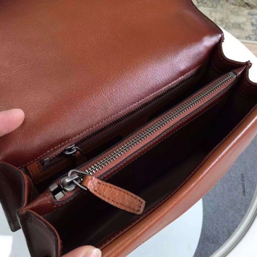 Crafted from incredibly soft clafskin leather, this shoulder bag from Gucci will quickly become a staple in your wardrobe. Luxe status is locked in by the double tiger head decoration and the chain strap in silver-tone metal. Carry it in your hand from the office to dinner dates. 16*7.5*17 cm.
