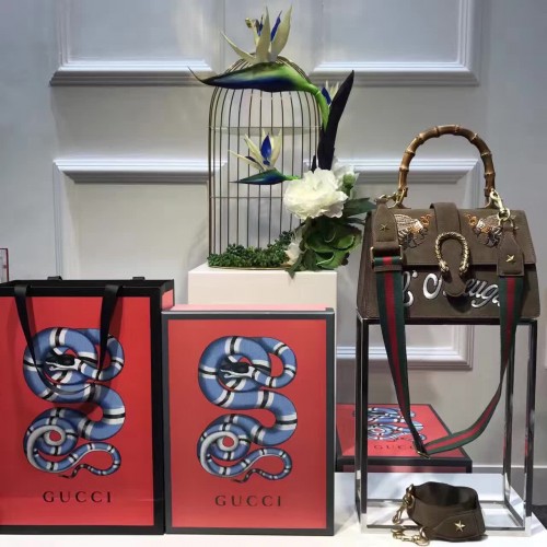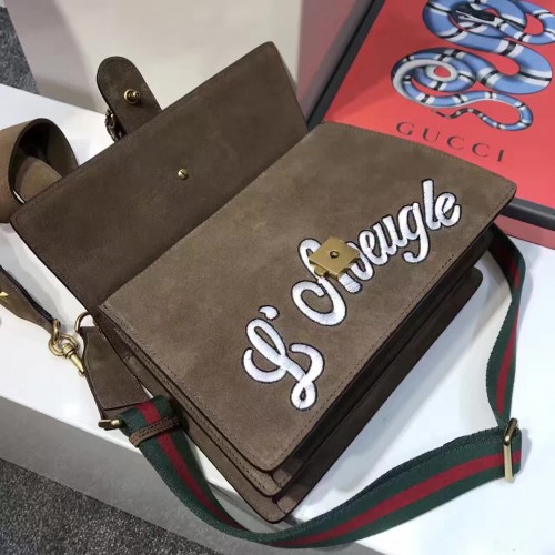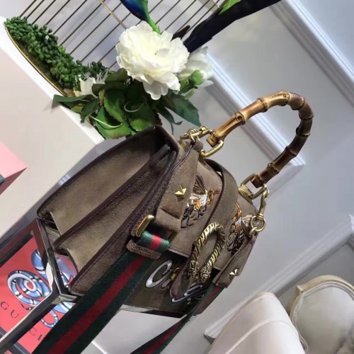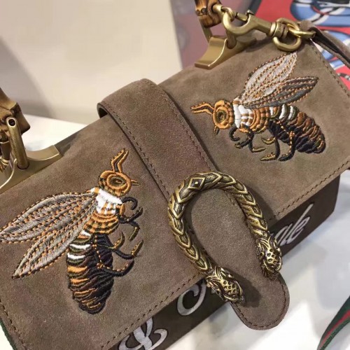 Gucci Dionysus Suede top handle bag with bee Brown