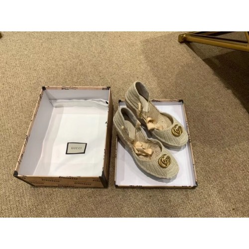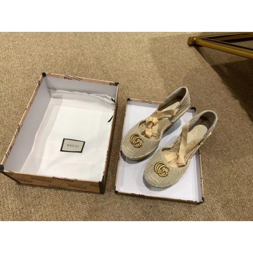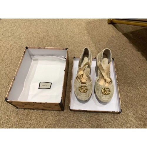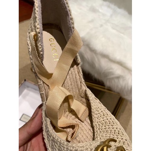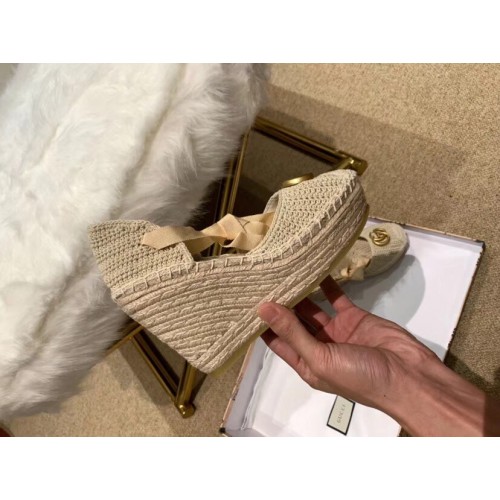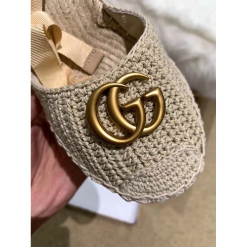 Gucci Double G Crochet Platform 10cm Espadrille with Grosgrain Lace-up Beige