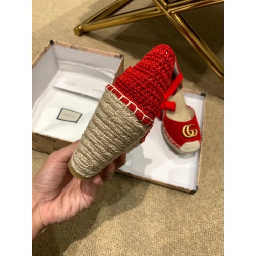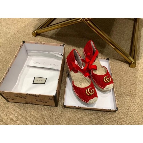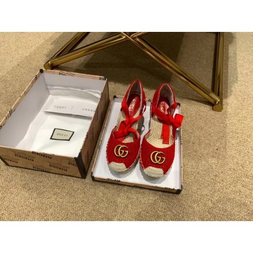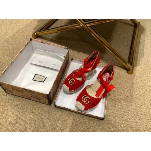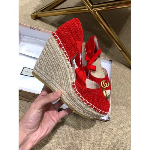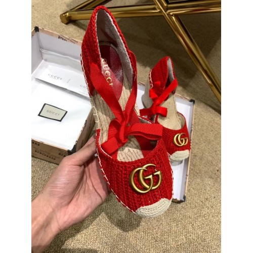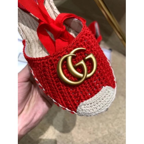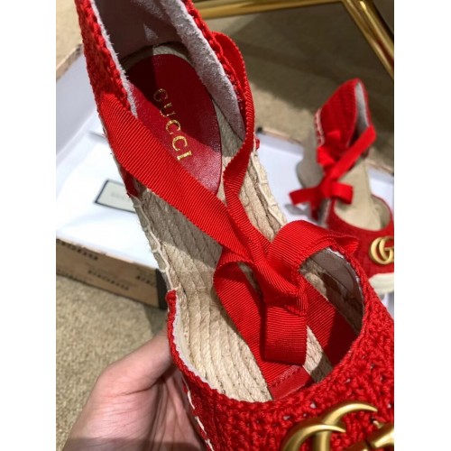 Gucci Double G Crochet Platform 10cm Espadrille with Grosgrain Lace-up Red