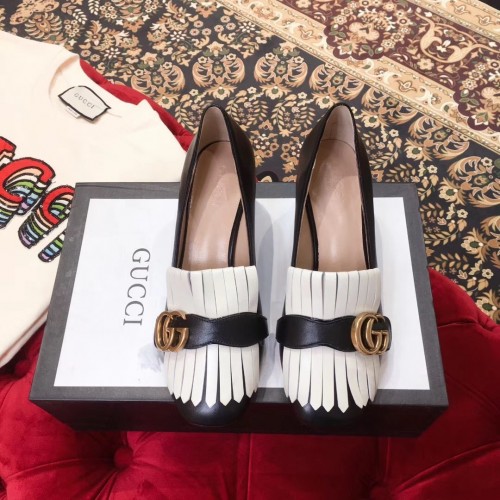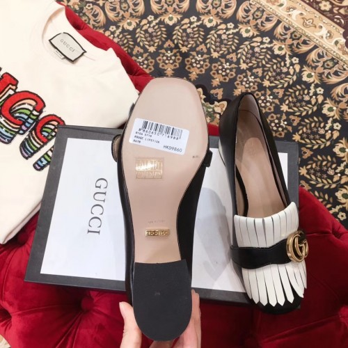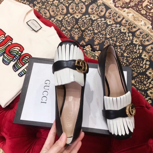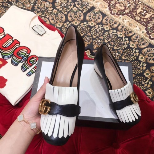 Gucci Double G Fringe Leather Mid-heel 4.5cm Pumps Black/White 2019
