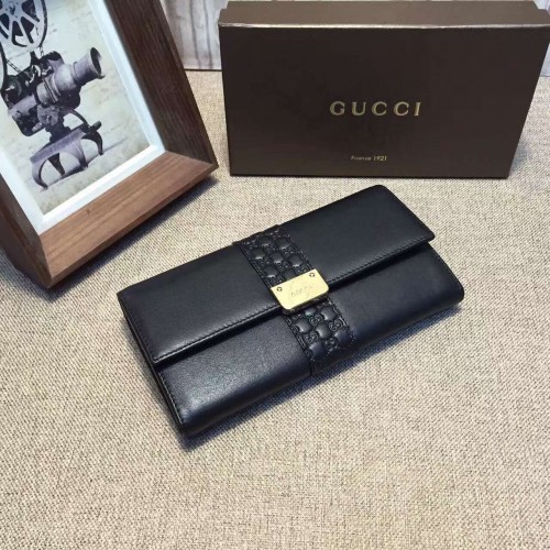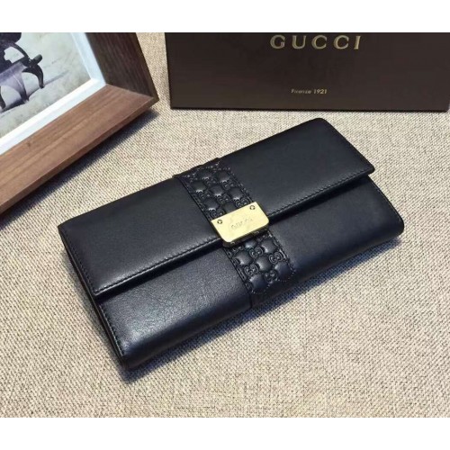 Gucci engraved gucci metal plate continental wallet 233028 black leather