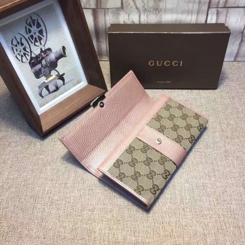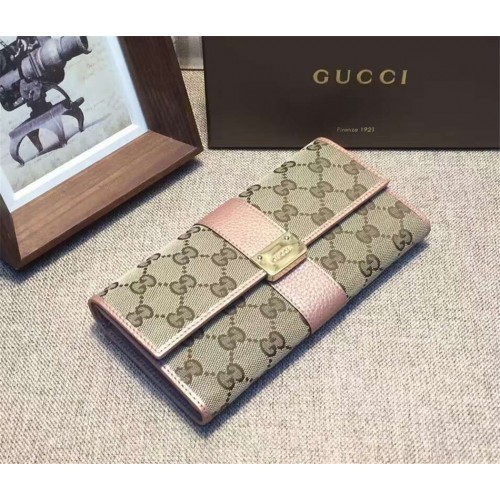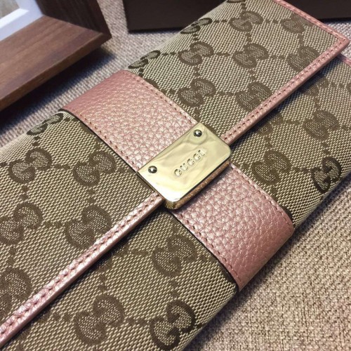 Gucci engraved gucci metal plate continental wallet 233028 light pink