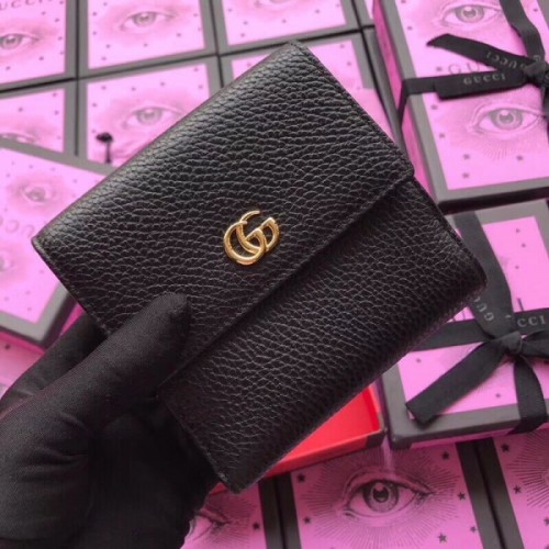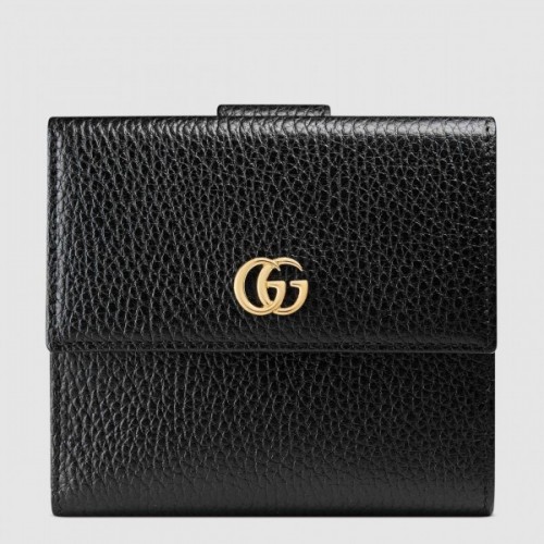 Encase your monetary essentials in true Italian luxury courtesy of the Gucci Marmont fold-over wallet. Rendered from luxurious grained leather, it opens to reveal a compartmentalised interior with multiple card slots to keep your cards close to hand. Decorated with the polished gold-tone GG hardware, it serves as a statement finish.