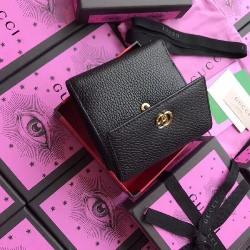 Gucci French Flap Wallet In Black Leather
