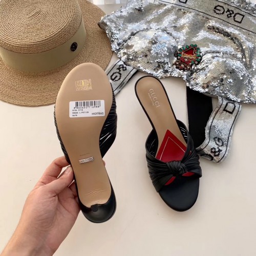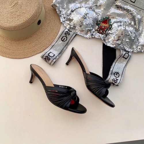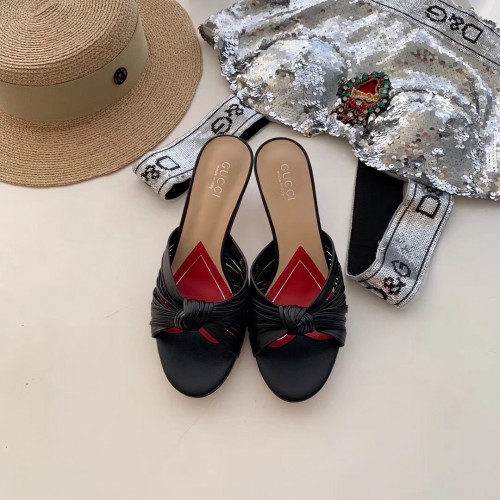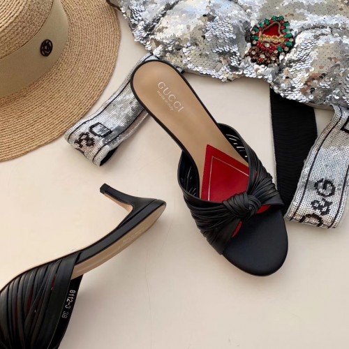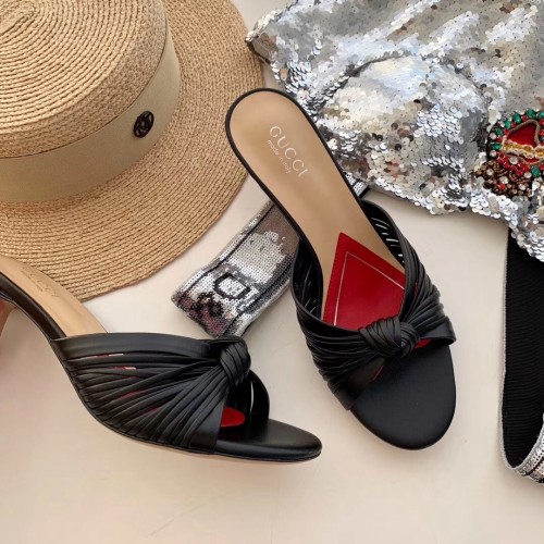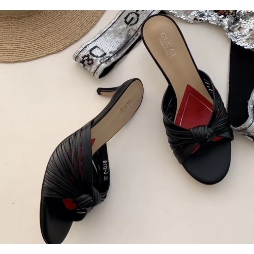 Gucci Front Knot Leather Mid-heel Sandals 577229 Black 2019