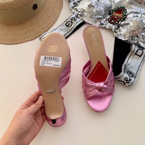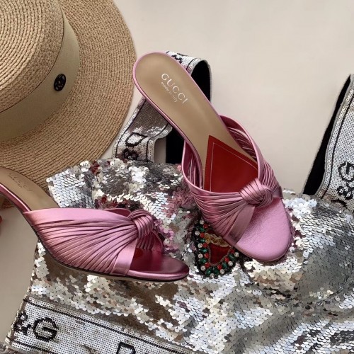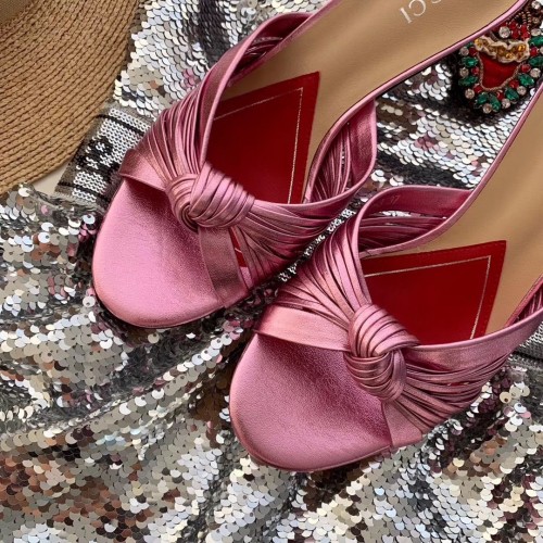 Gucci Front Knot Leather Mid-heel Sandals 577229 Metallic Pink 2019