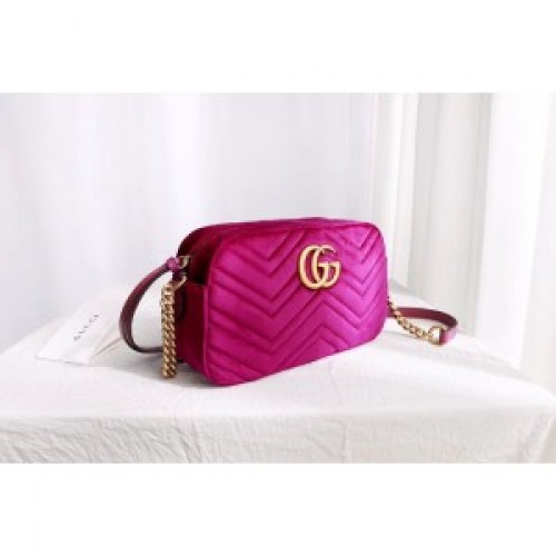 Gucci Fuchsia GG Marmont Velvet Small Shoulder Bag
