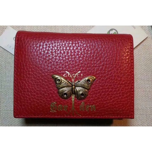 Gucci Garden Butterfly Leather Card Case 516938 Red