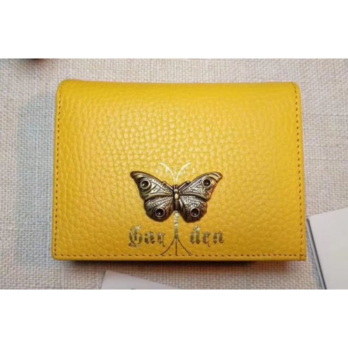 Gucci Garden Butterfly Leather Card Case 516938 Yellow