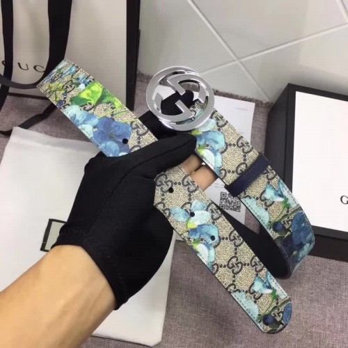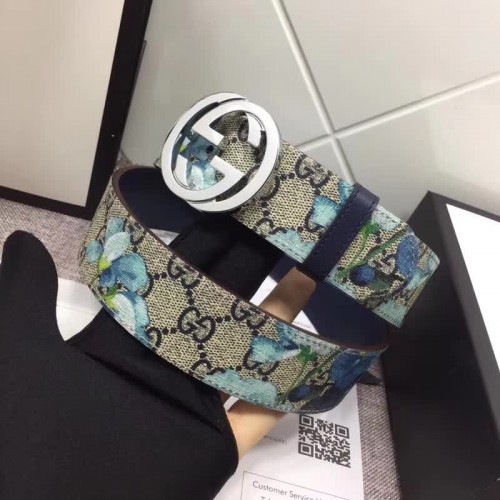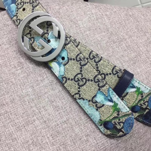 Gucci GG Blooms Belt 3.7cm Width Silver Hardware 370543 Blue