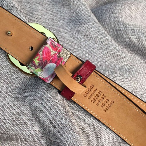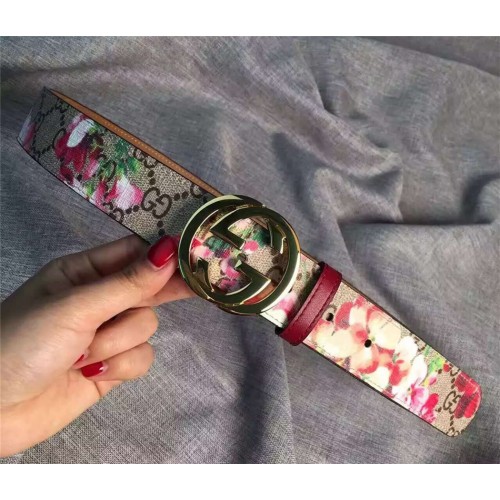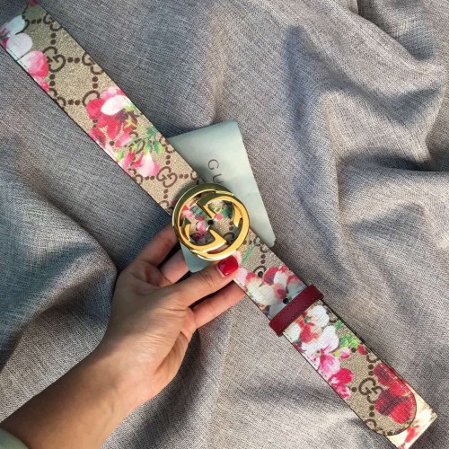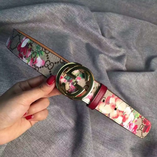 3.5cm widthBlooms print beige/blue GG Supreme canvas with leather detailMade in Italy