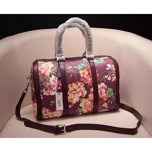 Gucci GG Blooms canvas boston bag Purplish RedSKU:MHJP-02Size:W33*H22*D18cm