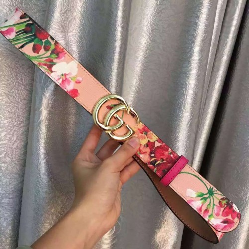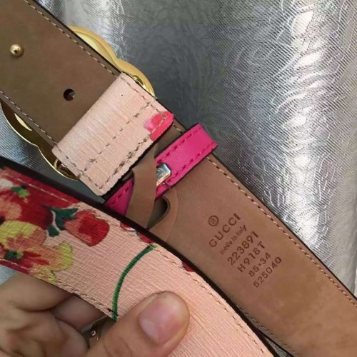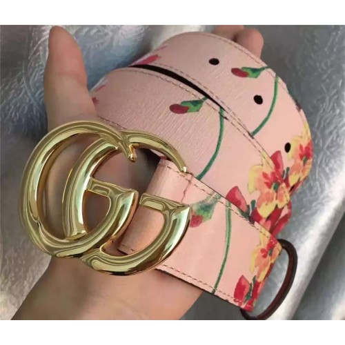 Gucci GG Blooms leather belt with double G buckle pink