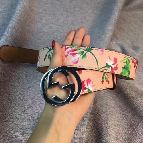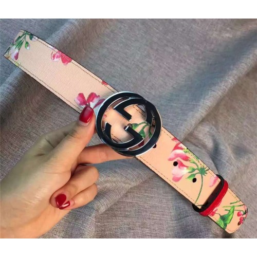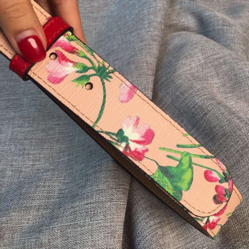Gucci GG Blooms leather belt with interlocking G pink