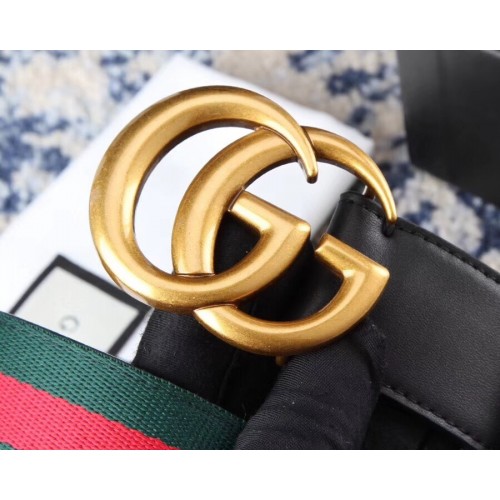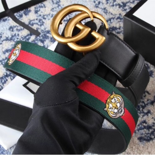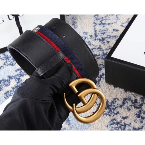 Gucci GG Buckle Calfskin Web Belt 38mm Width Green/Dark Blue