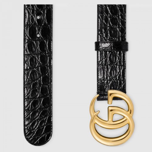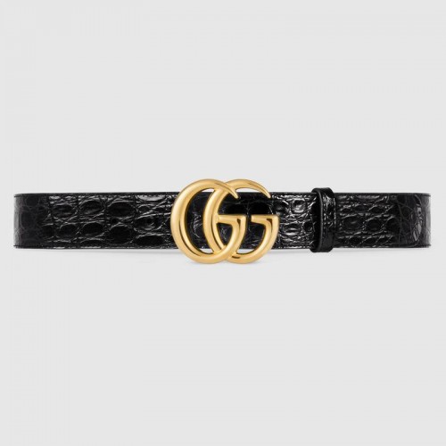 Gucci GG Marmont caiman belt with shiny buckle