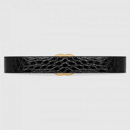 The emblematic Double G is reintroduced for Spring Summer 2020 in a luminous gold-tone, set on a men's black crocodile leather belt.