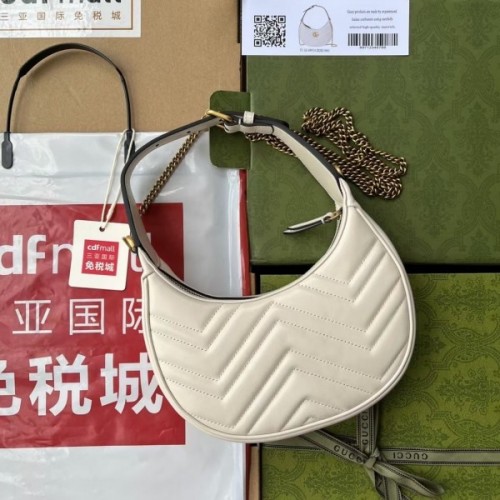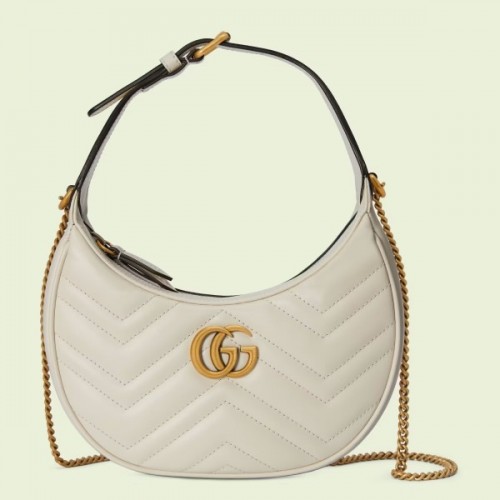 Tags: Gucci GG Marmont Half-moon-shaped Bag In White Leather, ,