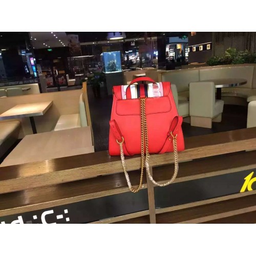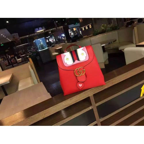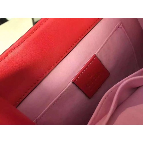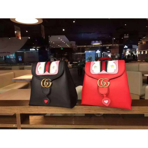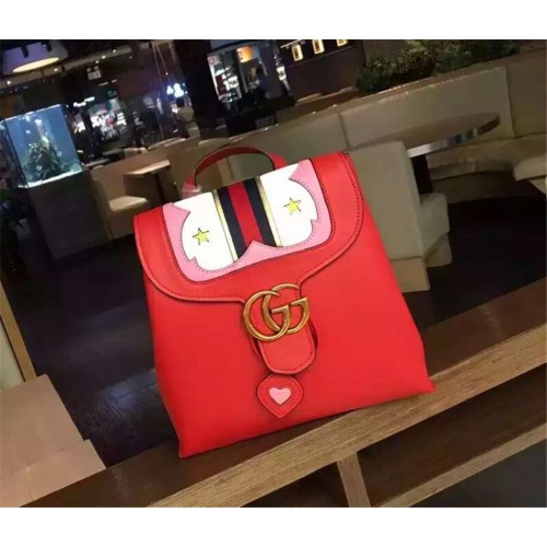 size:29*27*14 cmA GG Marmont leather backpack with Western details on the front flap and a heart leather tab on the end of the adjustable pull.Black/red leather with pink and blue leather trim and metallic leatherDouble GInterior open and smartphone pocketsTop handle with 1.5" dropAdjustable chain shoulder strapsMagnet closureWestern leather details with blue/red/blue web detailMade in ItalyAntique gold toned hardware