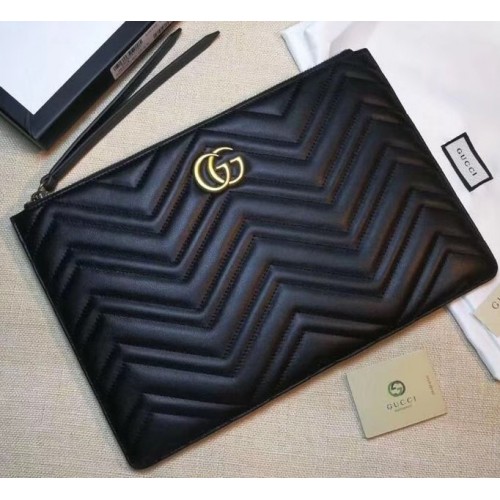 Gucci GG Marmont Leather Pouch Clutch Bag 476440 Black