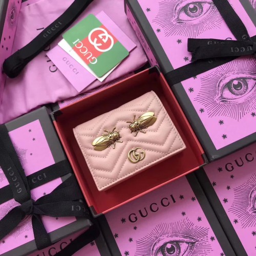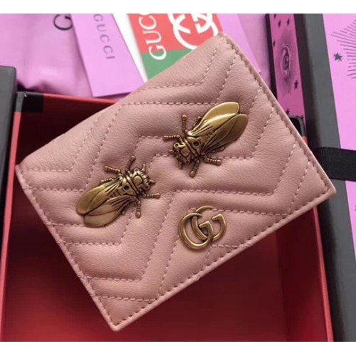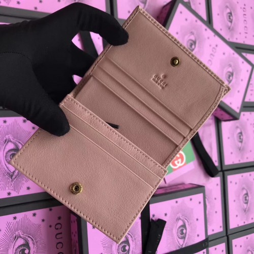 Gucci GG Marmont Metal Cicadas Studs Card Case 466492 Nude Pink 2017