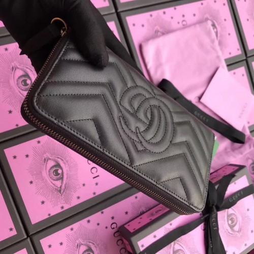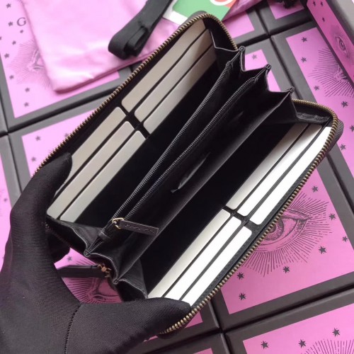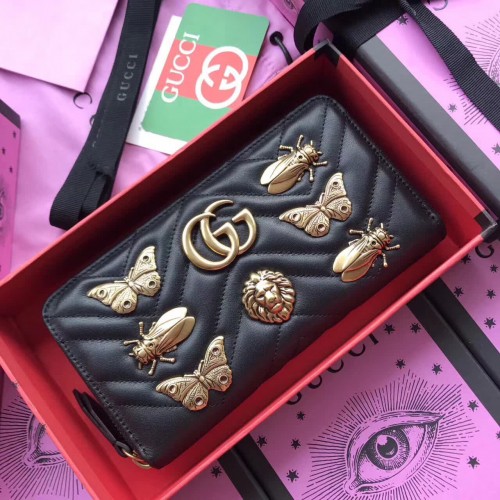 Gucci GG Marmont Metal Insects Studs Zip Around Wallet 443123 Black 2017
