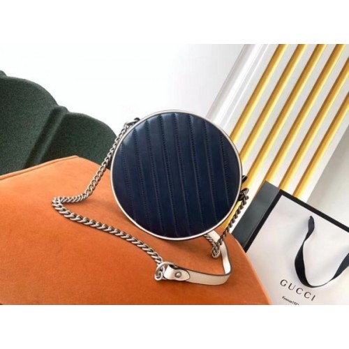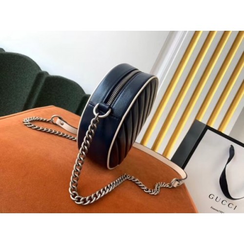 Tags: Gucci GG Marmont Mini Round Bag In Blue Diagonal Matelasse Leather, ,